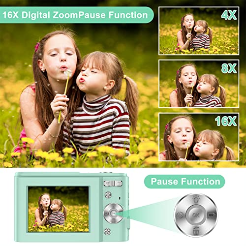 Digital Baby Camera for Kids Boys Girls Adults,1080P 48MP Kids Camera with 32GB SD Card,2.4 Inch Kids Digital Camera with 16X Digital Zoom, Compact Mini Camera Kid Camera for Kids/Teens/Student(Green)