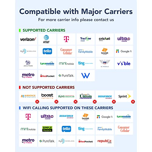 Verizon, AT&T, T-Mobile, Tracfone, Simple Mobile, Cricket, Ultra Mobile, H2O, Tello, Consumer Cellular, Boost Mobile, Google Fi, Jethro Mobile, Lycamobile, Mint Mobile, Ting, US Mobile, Visible, MetroPCS, RedPocket, Pure talk, Family Mobile, Wing