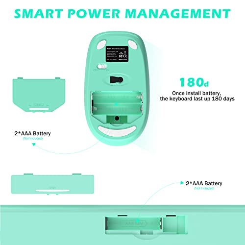 POWZAN Wireless Keyboard and Mouse, Ultra Slim Compact Full Size Wireless Keyboard and Mouse Combo 2.4G Ultra-Thin Sleek Design for Windows, Mac, Computer, Desktop, PC, Notebook – (Green White)