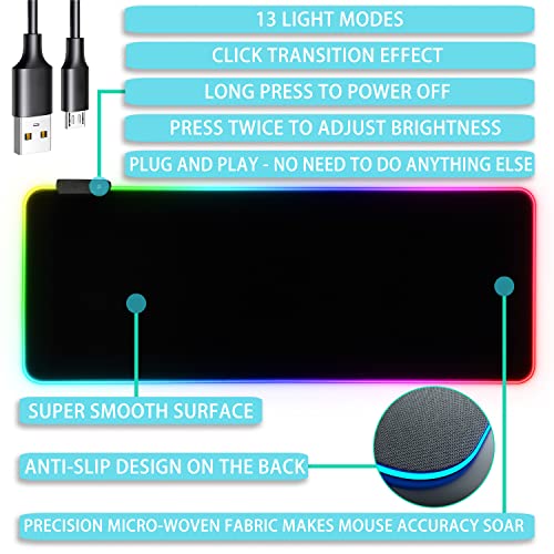 【Microfiber Woven Material】: RGB gaming mouse pad pixel-accurate positioning and tracking optimized for all mouse sensitivities and sensors without any lag or disconnection; Luminous fiber and soft cloth surface with non-slip rubber base to ensure precise mouse control , the desktop is stable and stable