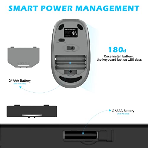 【Windows and Mac Keyboard Layout 】 — Enjoy the familiar typing whether you’re apple fans or a PC user. Available for both PCs and Macs (complete with the right Command and Option keys position), you can use Windows or Mac keyboard layouts depending on your devices system with this keyboard and mouse. (The keyboard works with 2 AAA battery, the mouse uses 2 AAA battery, batteries are not included)