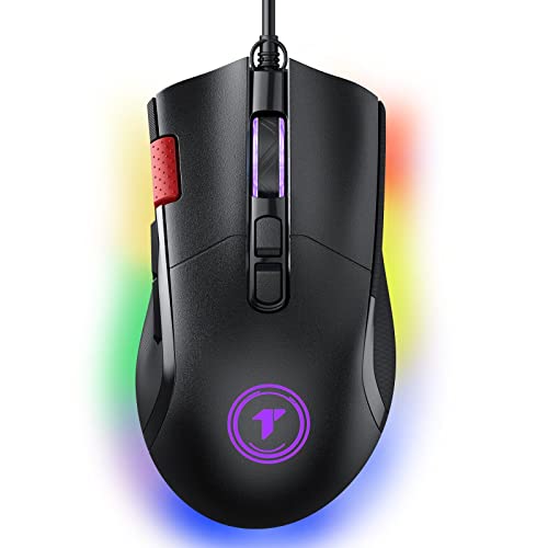 TECURS Wired Gaming Mouse, RGB Backlit Ergonomic Mouse with 8 Programmable Buttons up to 7200 DPI for Laptop/Windows PC/Mac, USB Mouse Gamer Mouse Black