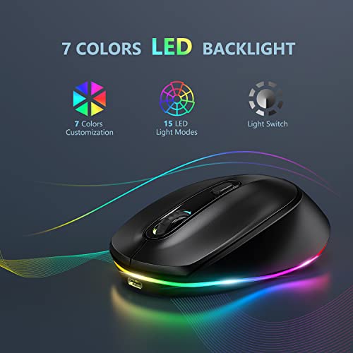 Wireless Mouse, Rechargeable Silent Mouse with Rainbow Backlight & 3 Adjustable DPI, Light Up Mouse for Laptop, PC, Mac, Chromebook, Small Mice for Home, Office, Travel, Business Travel, Black