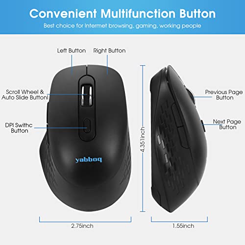 【Ergonomic Design】 The YABBOQ mouse has a sleek and stylish curved profile that provides an excellent ergonomic fit and comfort. Your thumb rests comfortably on the thumb rest, relieving palm fatigue and preventing finger cramps.