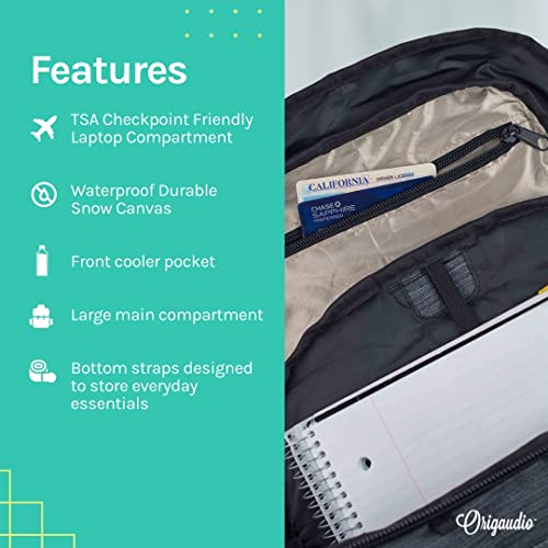 Origaudio Mission Pack – Water-Resistant Canvas Backpack for Hiking & Travel with 15″ Laptop Sleeve and USB Techport – Storage for Water Bottles, Sunglasses, Wallets, and Accessories