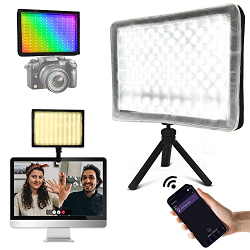 Foldable Light Panel, 12.5”x9” Rollable Lighting Panel for Photography with Desktop Tripod Hot Shoe Detachable Clip Diffuser Cloth &Carry Bag, 360°Full Color 2500K-6500K CRI 96+, Support App Control