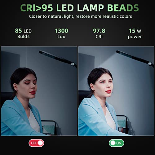 【FLEXIBLE CANTILEVER DESIGN】The flexible swing arm can adjust the lighting height from 10 to 33 inches, and the four adjustment points on the swing arm which can be adjusted from multi-angle, allowing you to position the lamp almost anyway you want. There are five soft-touch controls: on/off, brightness up and down, color, and timer