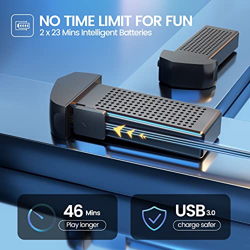 Better Flight Experience: 2 batteries give you up to 46 minutes flight experience. And functions like Altitude Hold, Optical Flow, Headless Mode, One Key Take Off/Landing and Speed Adjust make it so easy to beginners or newbies.