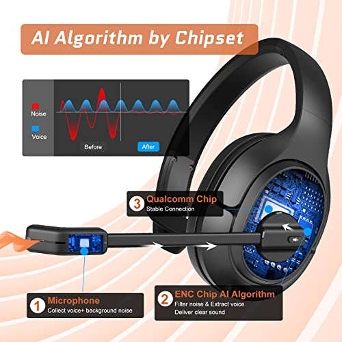 Trucker Bluetooth Headset, Wireless Headphones with USB Dongle for PC, AI-Powered Environmental Noise Cancelling Microphone (ENC), 99ft Long Wireless Range, 57Hrs On-Ear Trucker Headsets