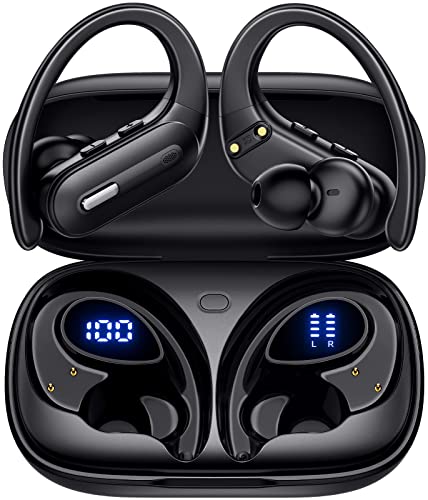 Wireless Earbuds Bluetooth 5.3 Headphones 60 Hrs Playtime Sports Ear buds with Wireless Charging Case & LED Power Display Over-ear Earphones with Earhooks Waterproof Stereo Bass Headset for Workout