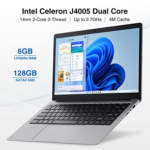 BiTECOOL Windows 11 Laptop, 14 inches HD Clear Display Lightweight Laptop, 6GB RAM 128GB SSD Intel Celeron J4005 Dual-Core Laptop Computer with 2.4G WiFi, Bluetooth, Webcam, Long Battery Life