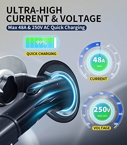 ✅【FAST CHARGING】: With a maximum current and voltage of 48A and 250V AC, this Tesla to J1772 charger adapter allows your electric vehicle to be charged in the shortest possible time, making your journey smoother. Super high current load capacity can make your car charging safer.