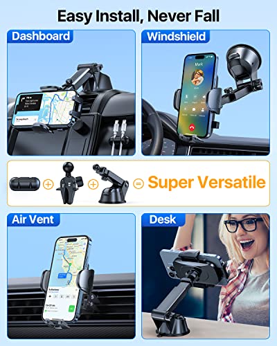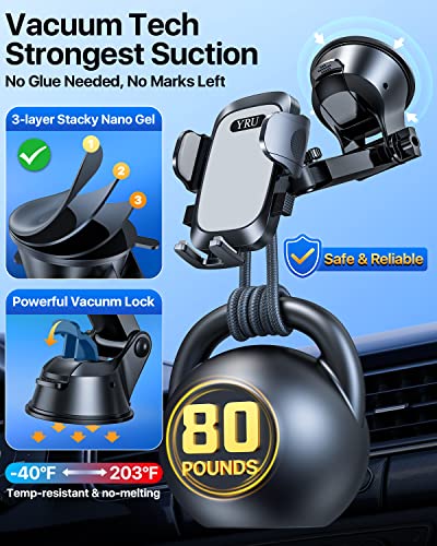 YRU [Upgrade 80LBS Strong Suction Car Phone Holder Mount,[Bumpy Road Stable] Dashboard Cell Phone Holder for Car Air Vent Windshield Phone Stand for iPhone 14 13 12 Pro Max Samsung Light-Grey