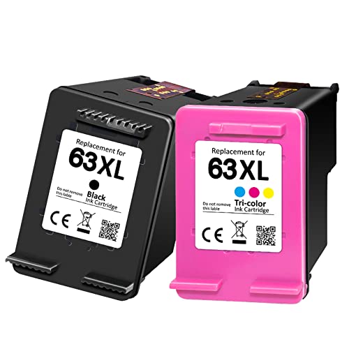 63 Ink Cartridges 63XL Replacement for HP 63 XL Ink Compatible with OfficeJet 3830 4650 4652 4655 5255 Envy 4520 4512 4513 DeskJet 1112 2130 3630 3632 2130 2136 2138 Printer(1 Black, 1 Tri-Color)