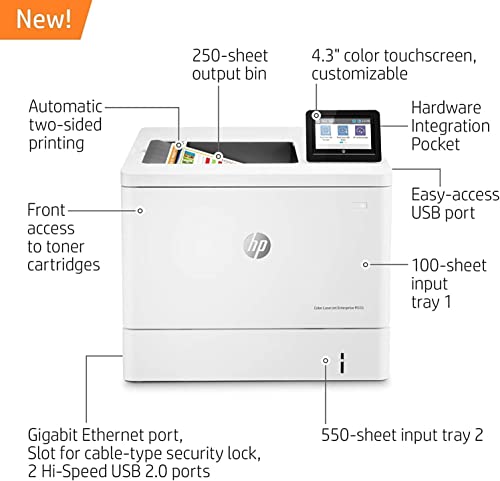 【Main Features】 The HP LaserJet Enterprise M555dn is a high-performance color laser printer designed for use in medium to large-sized offices or workgroups. It comes with only one 550-sheet standard input tray, it can print up to 40 pages per minute (ppm) for both color and black-and-white documents.
