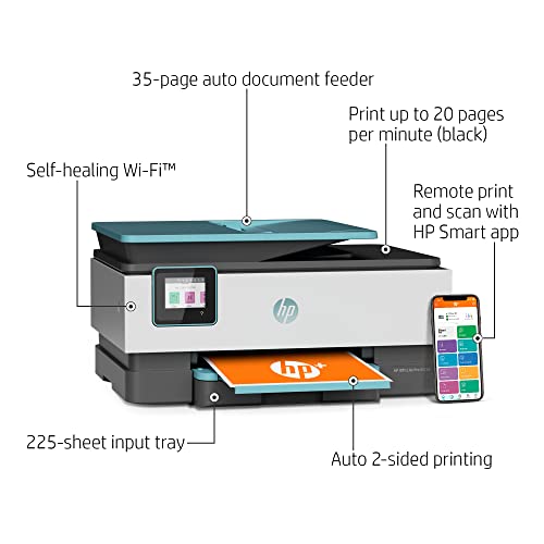 Get fast print speeds up to 20 ppm, automatic two-sided printing, reliable WiFi connectivity with this HP 8020e Series Printers. Activate the HP+ Smart Printing System and get 6 free months of Instant Ink, extended 2 year warranty. Save time with Shortcuts Get automatic two-sided printing, ink savings and HP+ benefits. This printer is intended to work only with cartridges that have new or reused HP electronic circuitry, and it uses dynamic security measures to block cartridges using modified or non-HP circuitry. Periodic firmware updates will maintain the effectiveness of these measures and block cartridges that previously worked. Upgrade home office productivity with the Ho OfficeJet Pro 8028e All-in-One Printer—fast speeds, custom app shortcuts, and the optional HP+ Smart Printing System. 6 free months of Instant Ink: Instant Ink signup required. Instant Ink not available in all countries. Subject to monthly page limit of plan selected. Must complete Instant Ink signup within 7 days of setting up the printer with the HP-recommended setup process as indicated in the instructions that came with your printer.