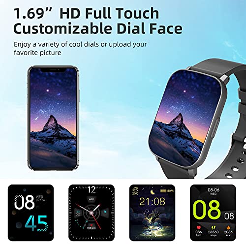【Stylish Smartwatch for Men and Women】With a 1.69-inch color full-touch HD screen and a lightweight, comfortable silicone strap, this smartwatch is perfect for anyone looking for a stylish and functional accessory.