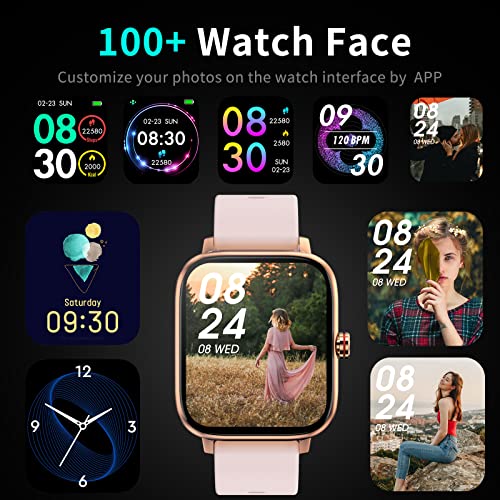 ?【1.7″ Large Screen & Customizable Watch Faces】Smart watch for android ios phones is equipped with a 1.7″ ultra-clear full-touch color screen, which makes the fitness watch for men women more stylish and durable. We have carefully designed beautiful UI and more than 100+watch faces for you, can also upload your own photos as watch faces, allowing you to switch watch face styles through the App at any time according to your mood and occasion.