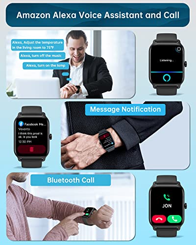 Smart Watches for Men Women (Answer/Make Call), Alexa Built in, 1.8″ Full Touch Screen Fitness Tracker with Heart Rate SpO2 Sleep Monitor IP68 Waterproof Smart Watch for iPhone Android Phones, Black