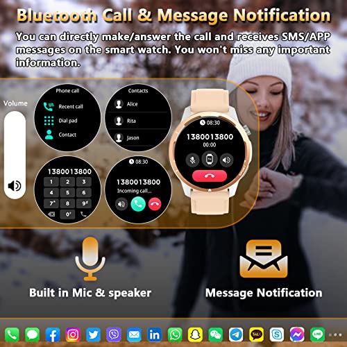 Smart Watches for Women, (Answer/Make Calls) Bluetooth 1.39″ Smartwatch for iOS and Android Phones, Waterproof Fitness Tracker Watch with Heart Rate/Sleep/Blood Oxygen Monitor, AI Voice Assistant