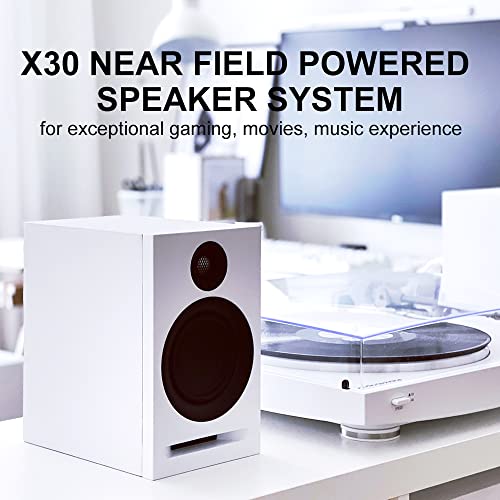 COMPACT BOOKSHELF SPEAKERS: With an integrated 180W amplifier, X30 active speakers deliver robust powerful room-filling sound without taking up much space thanks to its ultra-compact size at 8.66’’H x 5.32’’W x 7.87’’D.