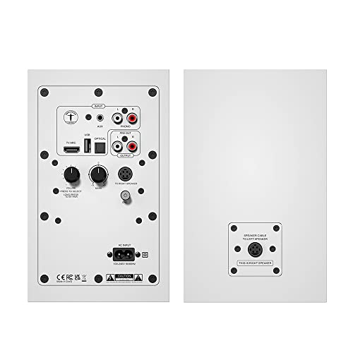 ABRAMTEK X30 Powered Bluetooth Bookshelf Speakers, 2.0 Stereo Near Field Active Speakers with Optical ARC Inputs, Phono Preamp, Subwoofer Out (White, Pair)