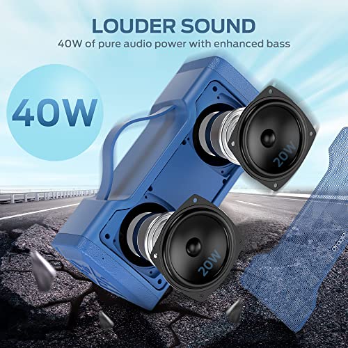 Oraolo Loud Bluetooth Speakers 40W Portable Bluetooth Speaker Large Stereo Sound, IPX6 Waterproof, Support TF Card/AUX, Built-in Mic for Home Party Outdoor (Blue)