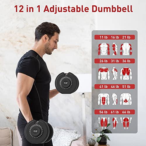 Adjustable Dumbbell Set Free Weights Dumbbell Multiweight Options 88/110/132 Lbs Dumbbell Pair for Men Women Full Body Workout Fitness Home Gym