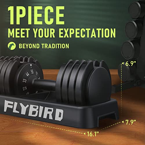 【SUITABLE FOR ANY FITNESS ENTHUSIASTS】FLYBIRD adjustable dumbbell supports diverse strength training by changing different weights. Adjustment weights from 11lb to 55lb, suitable for advanced weight trainers, and also a great choice for modify muscle lines and strong muscle fibers.