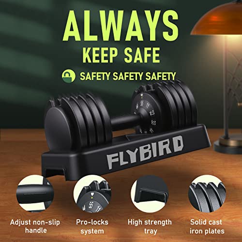 FLYBIRD Adjustable Dumbbell,25LBx2 Dumbbell Set for Men and Women with Anti-Slip Metal Handle,Fast Adjust Weight by Turning Handle,Black Dumbbell with Tray Suitable for Full Body Workout Fitness