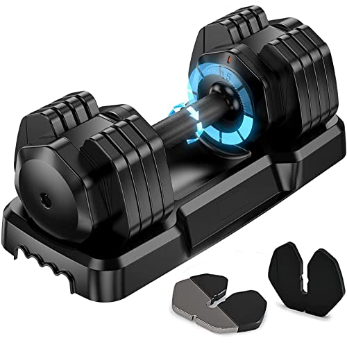 GIVIMO Adjustable Dumbbell 52.5lb with Anti-Slip Metal Handle – 15 in 1 Fast Adjust Weights Dumbbell for Full Body Workout Fitness – Free Weights Dumbbell with Tray for Men and Women