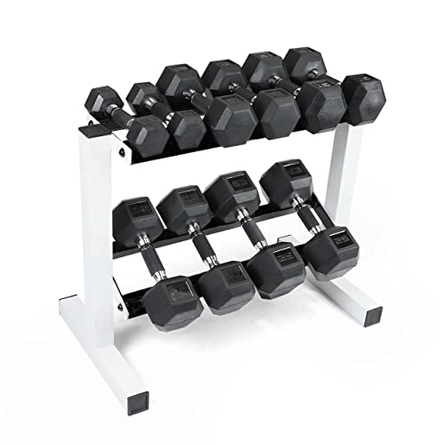 WF Athletic Supply 5-25Lb Rubber Coated Hex Dumbbell Set with Two Tier Storage Rack Non-Slip Hex Shape for Muscle Toning, Strength Building & Weight Loss – Multiple Choices Available