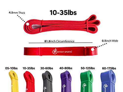 PULL UP BAND: Red band provides the resistance of 10 to 35 lbs, it is 4.5mm thick and 0.5 inch wide. Perfect assistance and resistance pull up band, workout band for crossfit, body pull-up assist band, power lifting, and many more disciplines and exercises. This is one of the best pull up bands options for any workout. Our resistance pull up band is so compact that it practically does not even take up any space or weight.