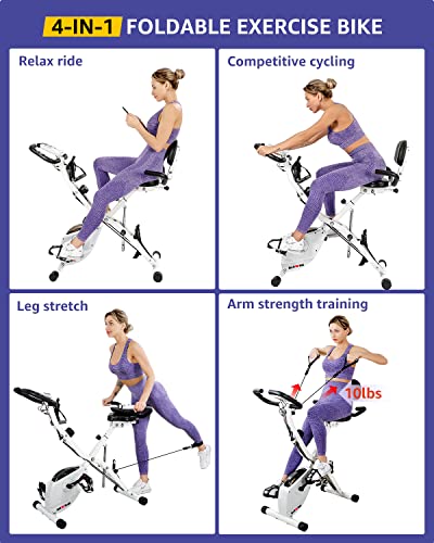 BARWING Stationary Exercise Bike for Home Workout | 4 IN 1 Foldable Indoor Cycling Spin Bike for Seniors | 330LB Capacity, 16-Level Magnetic Resistance, Seat Backrest Adjustments