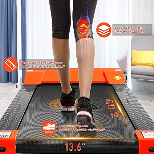 LARGER RUNNING AREA FOR YOUR WHOLE FAMILY AND PETS: The 13.6 inches wider anti-slip belt providing a safer and more comfortable experience for your running. What you get is not just an ordinary treadmill, but a treadmill for your pets, which meaning you, your family members, and your beloved dogs can all exercise and get fit on folding treadmill.