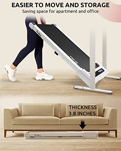 【Convenient Mobility】 – Movable wheels and light weight make it easy to move and store. When not in use, flat treadmill can be stowed under your sofa or bed.