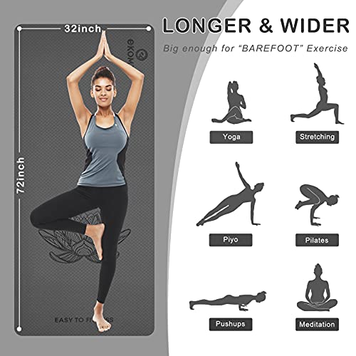 Ekomx Yoga Mat with Premium Carrying Strap(72″x 32″x6mm), Non Slip, non-toixc, Large TPE Workout Mat for Women & Men, Exercise & Fitness Mat for All Barefoot Yoga, Pilates Mats for Home Gym,Stretch