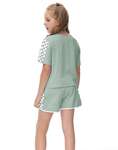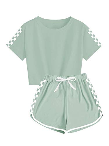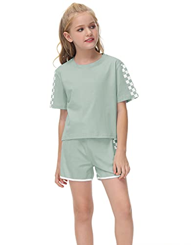 ✿Features: Crop tops with simple crew neck, basic solid color, cute short sleeve plaid tee and plaid shorts,relax style.Shorts are elastic waist design make kids more convenient and comfy.Note:The tie strap is a decoration, not functional
