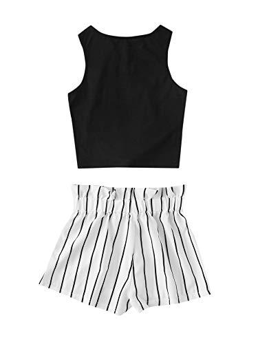 Romwe Girl’s 2 Piece Outfit Tie Knot Tank Tops and Striped Paperbag Waist Shorts Set