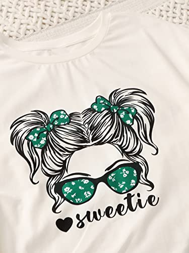 Feature: Short sleeve, round neck, figure graphic, elastic waist, ruffle hem, flare leg, fashion 2 piece outfit for girls, fashionable, cute