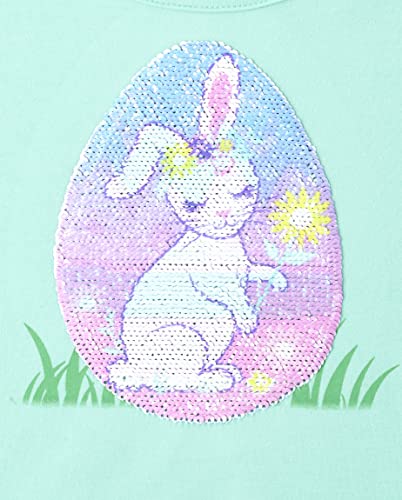 DESIGN — Features short sleeves, crew neck, high low hem and flip sequin Easter graphic design at front