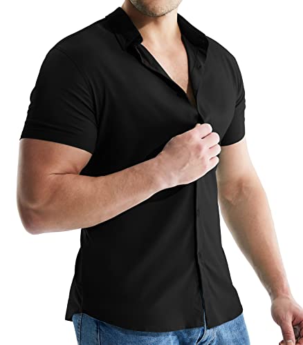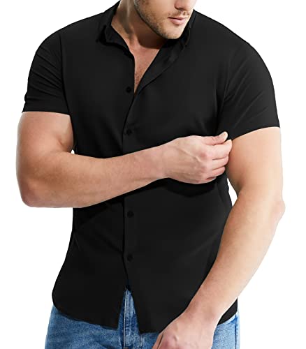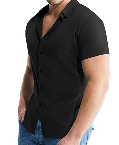 CLASSY DRESS SHIRTS – Designed with Classic Turn down Collar, Button Up Closure Selected Solid Colors & Short Sleeve, Slim Fit & Stretchy Fabric, this men’s casual dress shirt will show off your figure while still having enough comfort and space for daily movement.