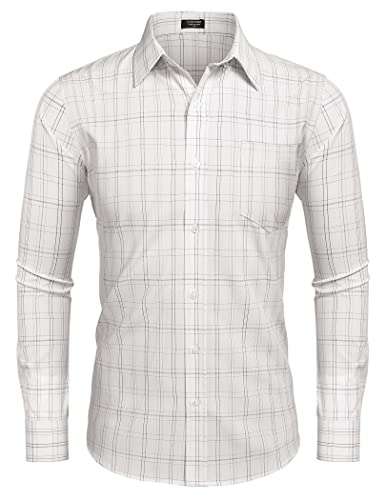 Regular Fit: Point collar, real single patch chest pocket, button up closure, double layer placket, long sleeves, barrel adjustable cuffs allow for a more improved fit, round hem, with a checkered sort of square grid matrix design which is sophisticated enough to wear with your business casual wardrobe.