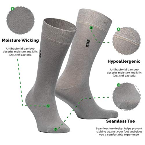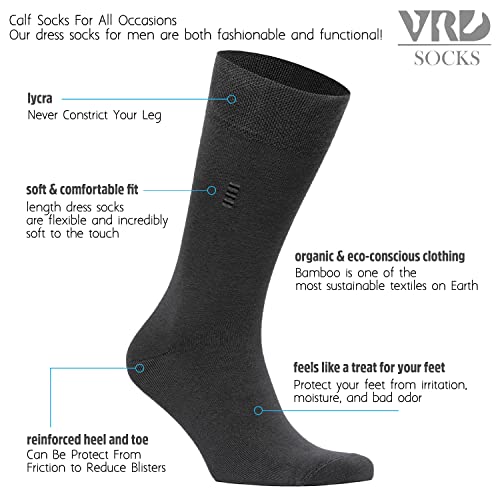 Men’s Bamboo Dress Socks – 5-Pack – Mens Calf Socks & Hosiery – Plain Designed – Moisture Wicking Soft Casual – Size 8-12