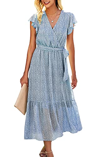 Style: Casual, Cute, Ruffle Short Sleeve, Wrap V Neck, Floral Printed, Leopard Print, Polka Dot, A Line, Removable Belt, Midi Length, Flowy and Lightweight, Lined Midi Dress