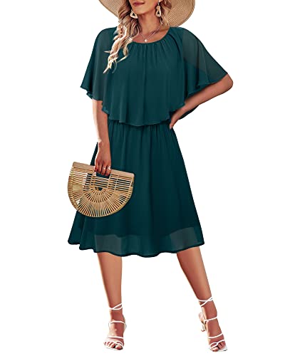 Bodhi talk Women Chiffon Dress Sleeveless Capelet Sleeve Dresses Lightweight Flowy Knee Length Dress