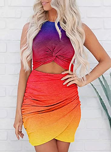 BTFBM Women 2023 Summer Sleeveless Casual Crewneck Bodycon Tank Dress Cutout Twist Slim Wrap Club Party Evening Dresses