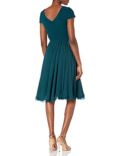 Style: Corey Plunging Mix Media Cap Sleeve A-line Midi Dress