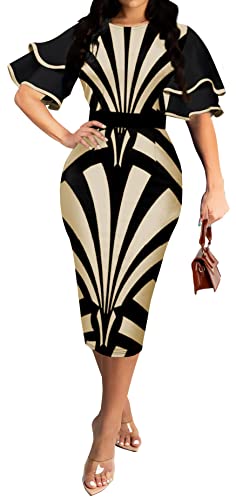 FoveNK Pencil Dress for Women Business Elegant Ruffle Sleeve Bodycon Church Dresses Wear to Work Zipper