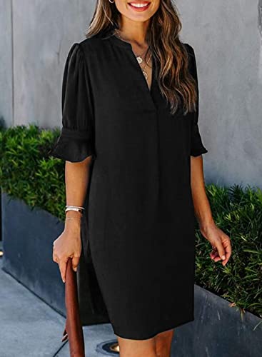 ✿Features: Knee length dress, V-neck, ruffle sleeves, shift dress, solid color, simple and plain,soft and attractive.Can be used as maternity dress。